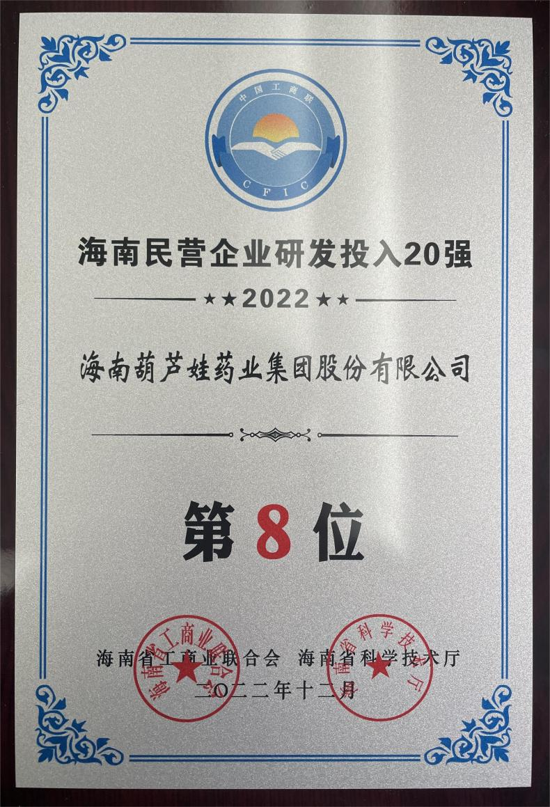 12月23日,2022海南民营企业50强和研发投入20强发布会在海口举行。会上发布了“2022海南民营企业50强”“2022海南民营企业研发投入20强”榜单和分析报告。70net永乐高药业再次荣登两榜,在海南民营企业50强榜单中位列第25位,较去年上升8位,这也是公司连续三年登榜;在海南民营企业研发投入20强中位列第8位,较去年上升7位。